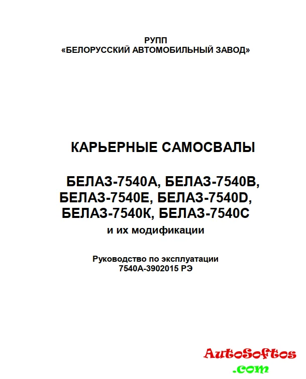 Руководство по эксплуатации - КАРЬЕРНЫЕ САМОСВАЛЫ БЕЛАЗ-7540А, БЕЛАЗ-7540В, БЕЛАЗ-7540Е, БЕЛАЗ-7540D, БЕЛАЗ-7540К, БЕЛАЗ-7540С и их модификации. Подробнее