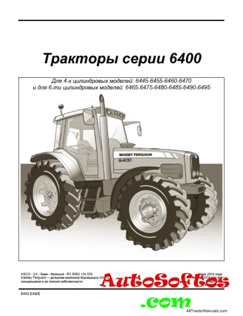 Massey Ferguson Тракторы серии 6400 - Для 4- х цилиндровых моделей : 6445-6455-6460-6470 и для 6- ти цилиндровых моделей : 6465-6475-6480-6485-6490-6495.