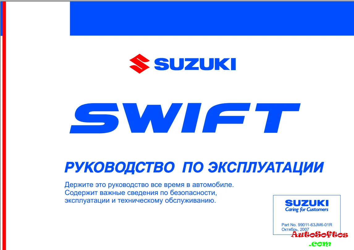 Руководство по эксплуатации - Suzuki Swift Содержит важные сведения по безопасности, эксплуатации и техническому обслуживанию. Подробнее