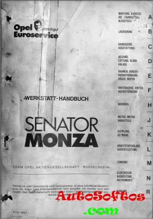 Описание: Это по-своему уникальное издание Предназначено для работников сервисных центров Opel по обслуживанию и ремонту моделей Opel Senator A1, A2 и Monza A1, A2. Теперь не надо перерывать массу форумов в поисках ответа что и как сделать - здесь в картинках, на 1340 листах (!!!) описано что и как ПРАВИЛЬНО сделать.