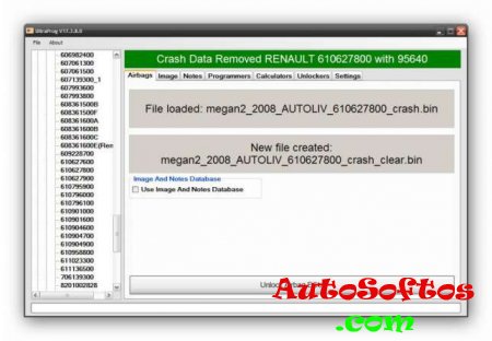 Программное обеспечение для работы с подушками безопасности (чистка краш) представлено более 1600 разновидностей блоков, содержит внутреннюю базу с подсказками по каждому блоку (в какой микросхеме краш) для облегчения восстановления, работа с иммобилайзером, штатными ГУ (расчет пина, и другие функции). Работает без аппаратной части.
