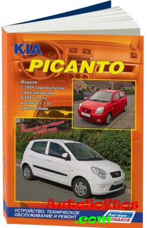Руководство на русском языке по техническому обслуживанию и ремонту автомобиля Kia Picanto с 2004 года выпуска с бензиновыми двигателями объемом 1,0/1,1 л.