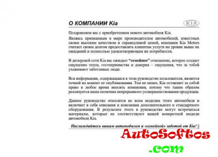 Руководство на русском языке по эксплуатации и техническому обслуживанию автомобиля Kia Opirus.