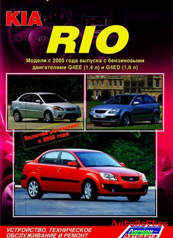 Инструкция по ремонту Киа Рио, устройство KIA RIO, руководство по эксплуатации и техническому обслуживанию Киа Рио, которые выпускаются с 2005 года, а также рестайлинговый вариант модели KIA RIO с 2009 года выпуска и оборудованы бензиновыми двигателями G4EE и G4ED рабочим объемом 1,4 и 1,6 л. соответственно.