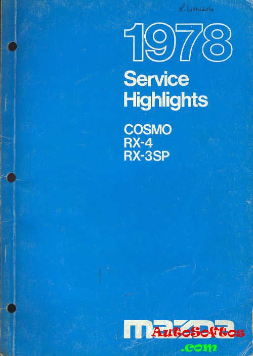 Руководство на английском языке с основными моментами технического обслуживания автомобилей Mazda Mazda Cosmo, Mazda RX-3SP и Mazda RX-4 1978 года выпуска.