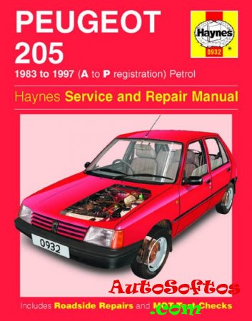 Руководство на английском языке по техническому обслуживанию и ремонту автомобиля Peugeot 205 1983-1997 годов выпуска с бензиновыми двигателями.