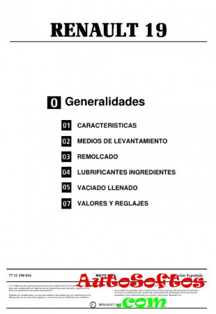 Руководство на испанском языке по техническому обслуживанию и ремонту автомобиля Renault 19.