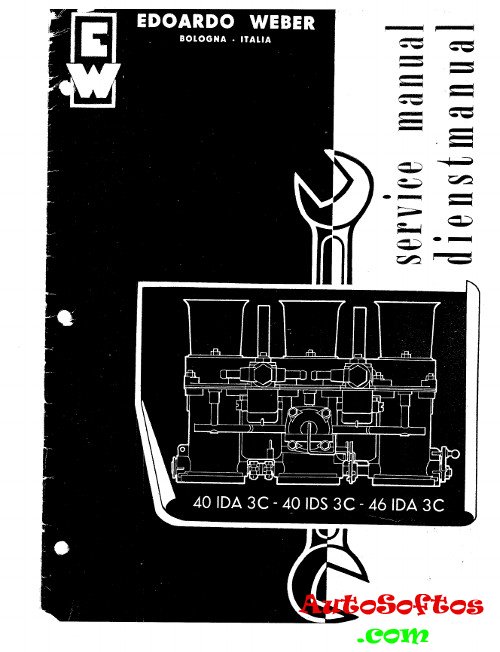 Руководство на английcком и немецком языках по техническому обслуживанию и ремонту карбюраторов Weber моделей 40 IDA 3 C/40 IDS 3 C/46 IDA 3 C автомобиля Porshe 914-6.