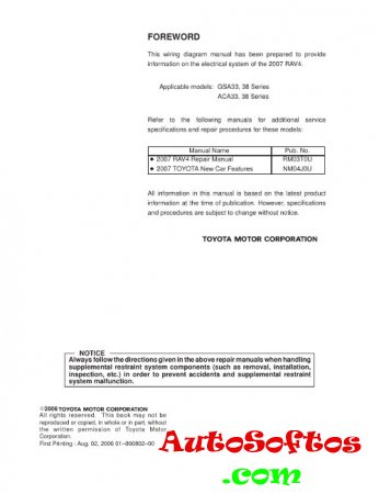 Сборник руководств на английском языке по техническому обслуживанию и ремонту автомобиля Toyota RAV4 2001-2005 годов выпуска.