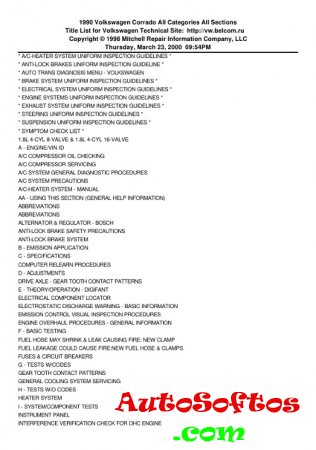 Руководство на английском языке по техническому обслуживанию и ремонту автомобиля Volkswagen Corrado 1990 года выпуска.
