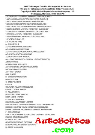 Руководство на английском языке по техническому обслуживанию и ремонту автомобиля Volkswagen Corrado 1993 года выпуска.