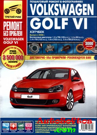 Руководство по эксплуатации, техническому обслуживанию и ремонту автомобиля Volkswagen Golf VI с 2008 года выпуска с бензиновыми двигателями.