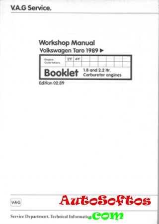Руководство на английском языке по техническому обслуживанию и ремонту автомобиля Volkswagen Taro с 1989 года выпуска с бензиновыми двигателями объемом 1,8/2,2 л.