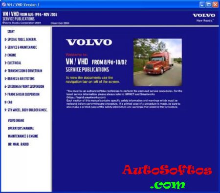 Мультимедийное руководство на английском языке по техническому обслуживанию и ремонту грузовых автомобилей Volvo VN/VHD 1996-2002 годов выпуска.
