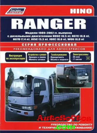 Руководство по ремонту Hino Ranger, а также руководство по эксплуатации и техническому обслуживанию, устройство Hino Ranger. Эта модель производилась в период с 1989 по 2002 годы. Автомобили оборудовались дизельными двигателями H06C (6,5 л.), H07C (6,8 л.), H07D (7,4 л.), J05C (5,3 л.), J08C (8,0 л.), W06 (6,0 л.). Ремонт Хино Рейнджер. Устройство. Эксплуатация. ТО. Электрические схемы.