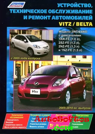 Toyota Vitz/Belta (Тойота Витц/Белта). Руководство по ремонту, инструкция по эксплуатации. Модели с 2005 по 2010 годы выпуска, оборудованные бензиновыми двигателями.