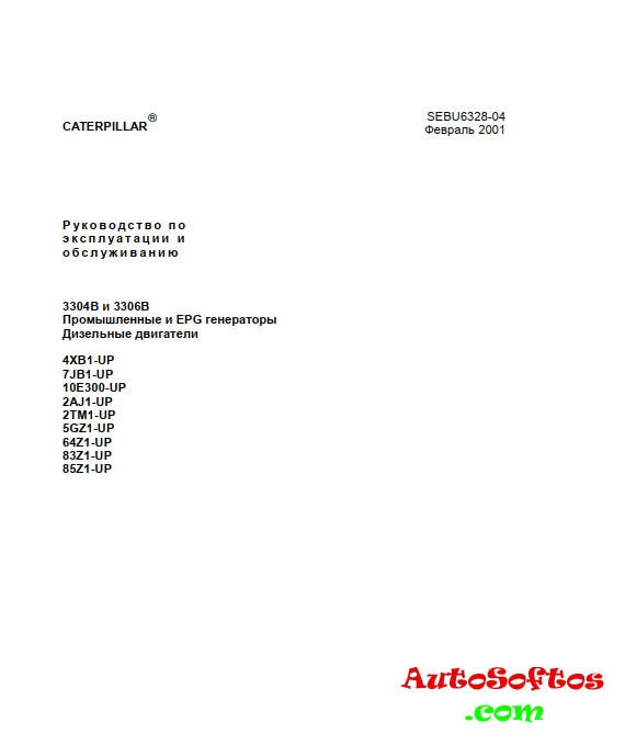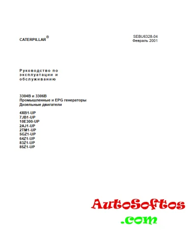 Руководство содержит инструкции по эксплуатации, технике безопасности, смазке и ремонту дизельных двигателей Caterpillar 3304B и 3306B. Оно включает графики обслуживания, описание компонентов и процедур для операторов и технического персонала. Подробнее