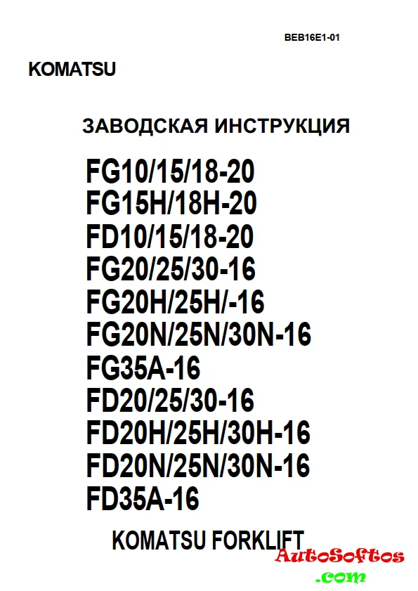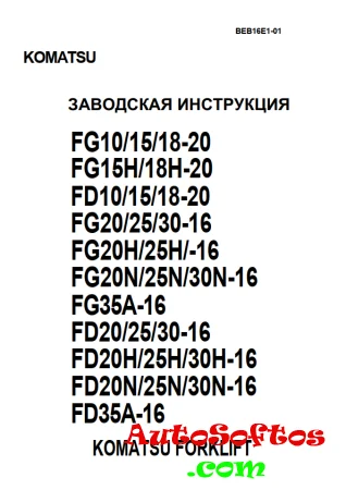 ЗАВОДСКАЯ ИНСТРУКЦИЯ по Обслуживанию автопогрузчиков Komatsu FG10/15/18-20, FG15H/18H-20, FD10/15/18-20, FG20/25/30-16, FG20H/25H/-16, FG20N/25N/30N-16, FG35A-16, FD20/25/30-16, FD20H/25H/30H-16, FD20N/25N/30N-16, FD35A-16, KOMATSU FORKLIFT. Подробнее