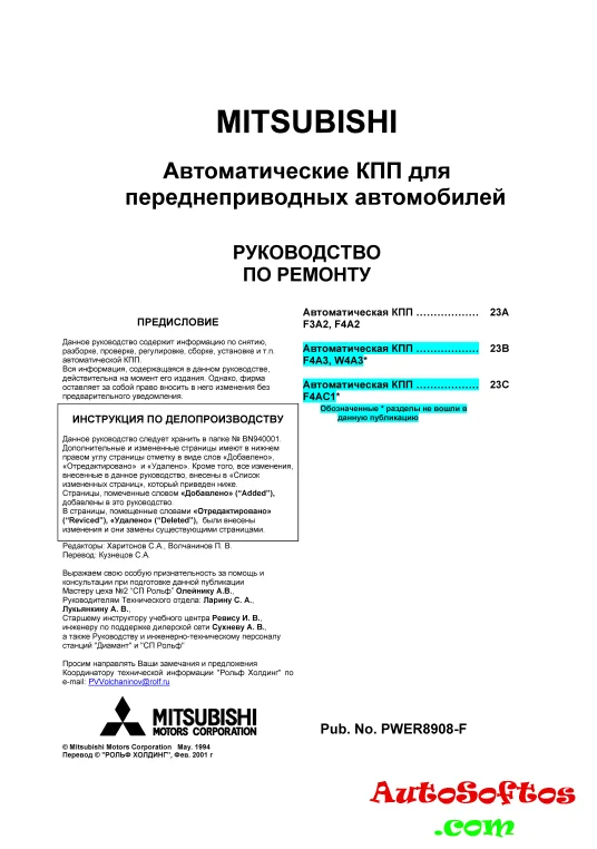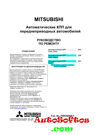 Руководство по ремонту MITSUBISHI Автоматические КПП для переднеприводных автомобилей.