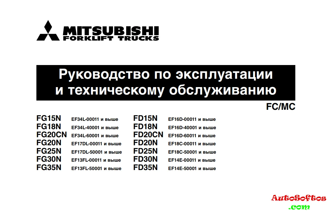 MITSUBISHI FORKLIFT TRUCKS - Руководство по эксплуатации и техническому обслуживанию FG15N, FG18N, FG20CN, FG20N, FG25N, FD15N, FD18N, FD20CN, FD20N, FD25N, FG30N, FG35N, FD30N, FD35N.