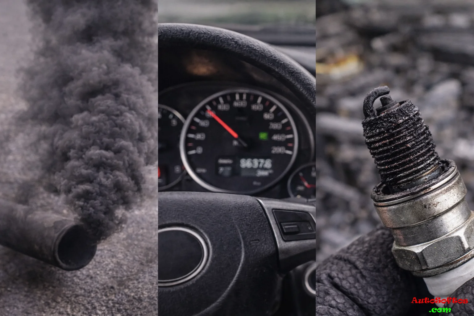 Потому что смесь слишком богатая и топливо не сгорает полностью.