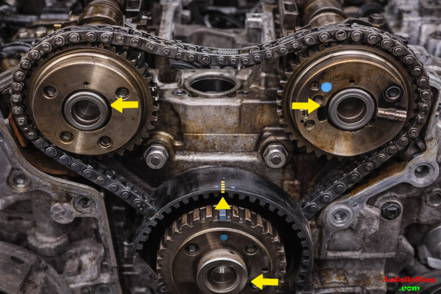 Хотя P0342 чаще выглядит как электрическая ошибка, на практике слабый или “неправильный” сигнал иногда появляется на фоне ухода фаз, растянутой цепи, проблем VVT/VANOS и общей нестабильности синхронизации. Поскольку распредвал и коленвал работают в связке, проблемы по фазам могут маскироваться под датчик.