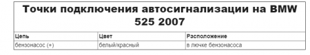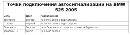 Точки подключения автосигнализации на BMW 525 e60 и подключения Автозапуска BMW 5 e60 2005