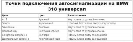 Точки подключения автосигнализации на BMW 318i