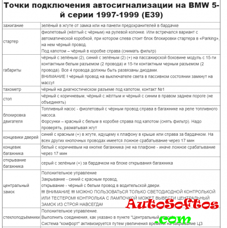 Подключения автосигнализации на BMW 5-й серии 1997-1999 (E39)