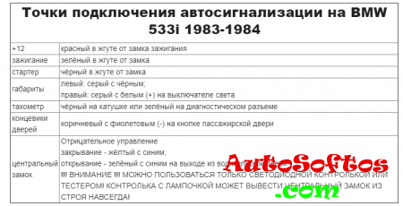 Точки подключения автосигнализации на BMW 533i 1983-1984
