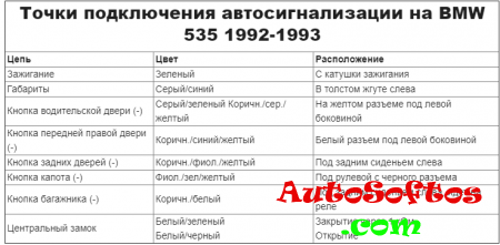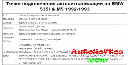 Точки подключения автосигнализации на BMW 535i & M5 1992-1993