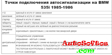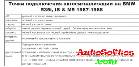 Точки подключения автосигнализации на BMW 535i, IS & M5 1987-1988