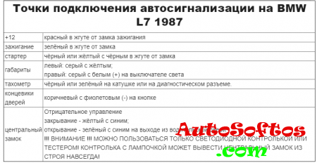 Точки подключения автосигнализации на BMW L7 1987