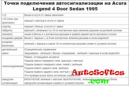 Точки подключения автосигнализации на Acura Legend 4 Door Sedan 1995
