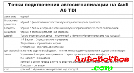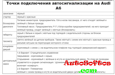 Точки подключения автосигнализации на Audi A6