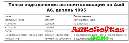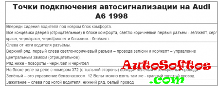 Точки подключения автосигнализации на Audi A6 1998
