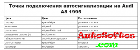 Точки подключения автосигнализации на Audi A8 1995