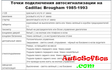 Точки подключения автосигнализации на Cadillac Brougham 1985-1993.