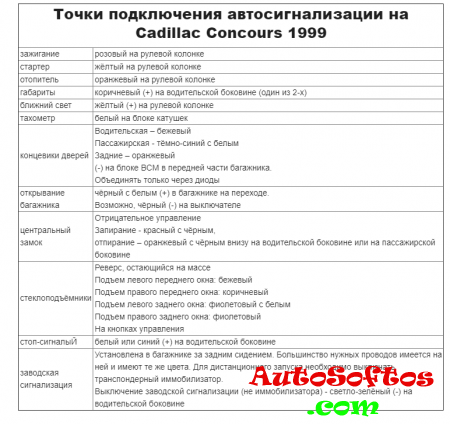 Точки подключения автосигнализации на Cadillac Concours 1999