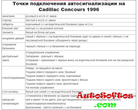 Точки подключения автосигнализации на Cadillac Concours 1996