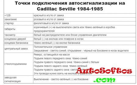 Точки подключения автосигнализации на Cadillac Seville 1984-1985