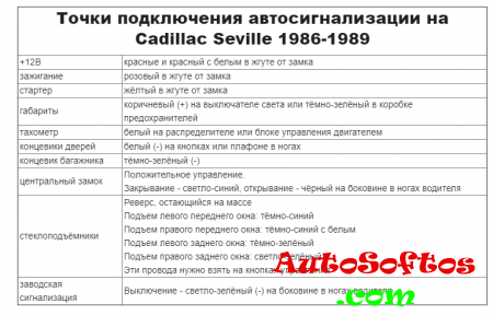 Точки подключения автосигнализации на Cadillac Seville 1986-1989