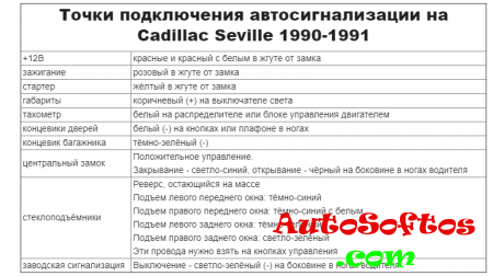 Точки подключения автосигнализации на Cadillac Seville 1990-1991