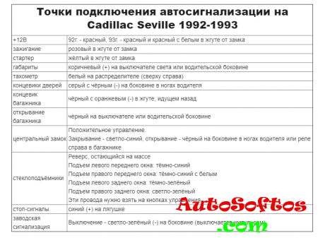 Точки подключения автосигнализации на Cadillac Seville 1992-1993