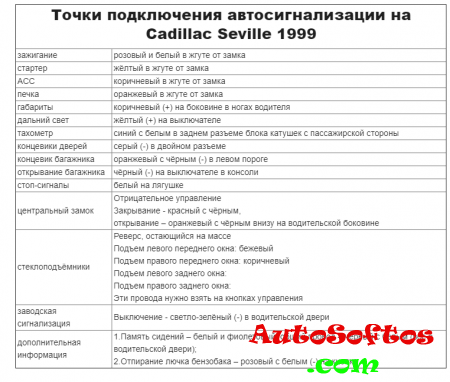 Точки подключения автосигнализации на Cadillac Seville 1999