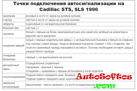 Точки подключения автосигнализации на Cadillac STS, SLS 1996 Точки подключения автосигнализации на Cadillac STS, SLS 1997