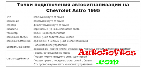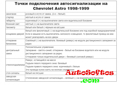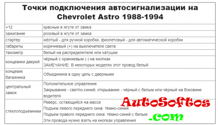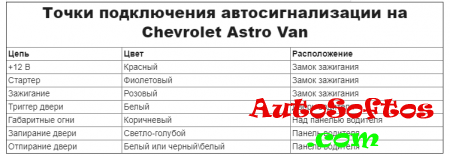 Точки подключения автосигнализации на Chevrolet Astro Van