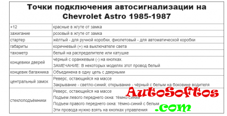 Точки подключения автосигнализации на Chevrolet Astro 1985-1987