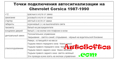 Точки подключения автосигнализации на Chevrolet Corsica 1987-1990.