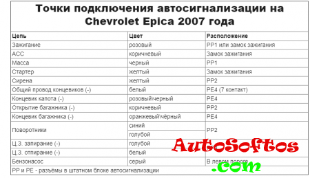 Точки подключения автосигнализации на Chevrolet Epica 2007 года